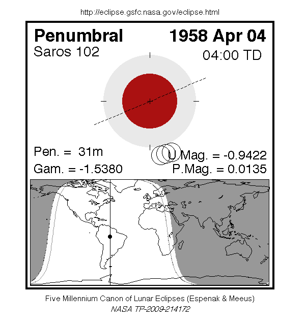 Fred Espenak: Partial Lunar Eclipse of 1958 Apr 04 HM Nautical Almanac Office: Partial Eclipse of the Moon - 1958 May 03 |
